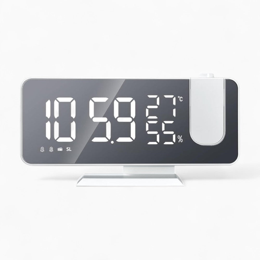Le design moderne du réveil blanc s’intègre parfaitement à votre espace et offre une projection claire de l'heure, avec une fonctionnalité radio pour un réveil apaisant.