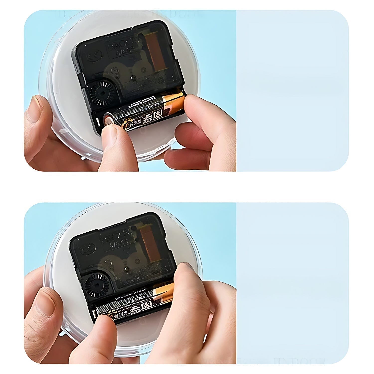 Une photo montrant la manipulation simple des piles. Offrez à votre enfant une autonomie complète avec un réveil pratique, facile à installer et utiliser, pour des matins sereins.