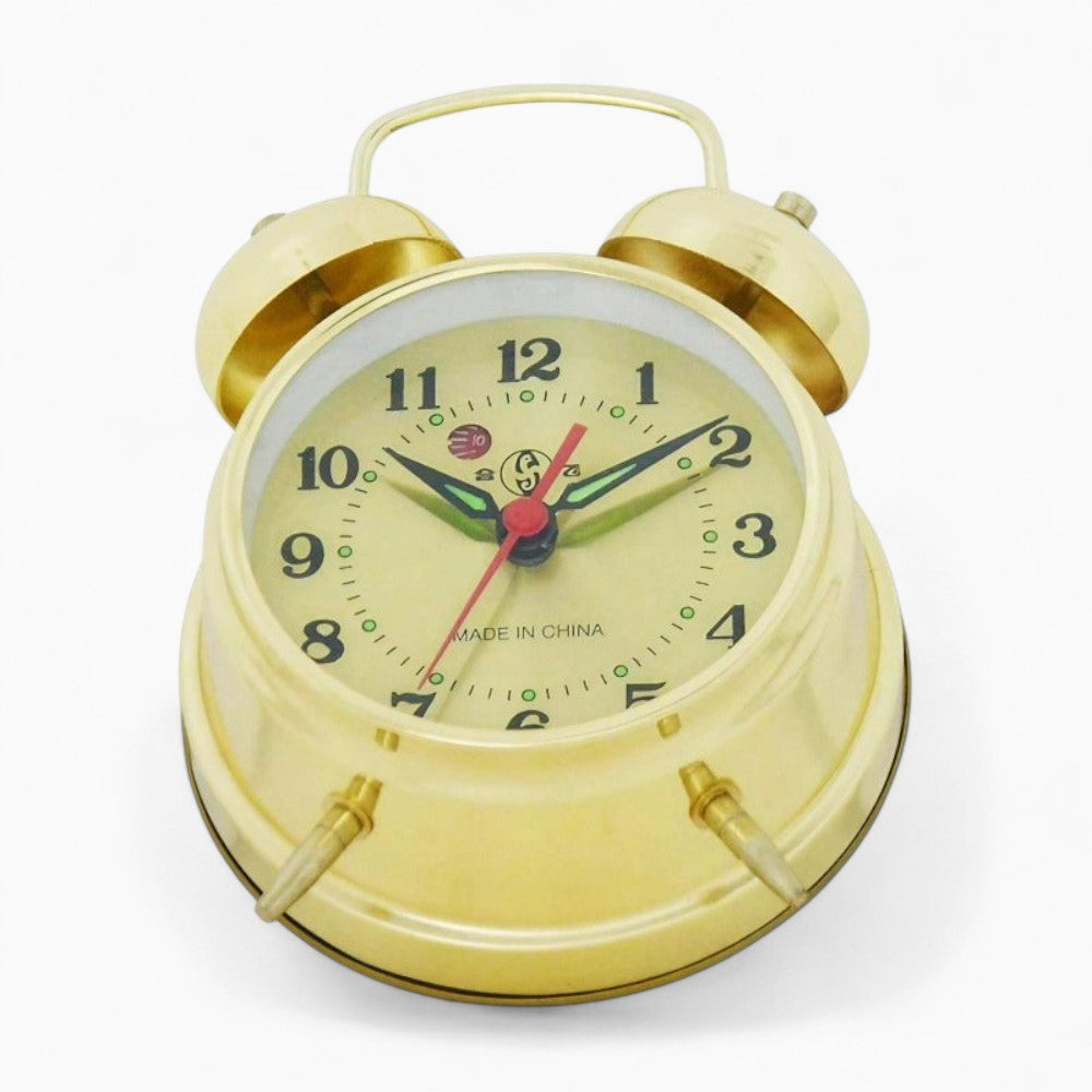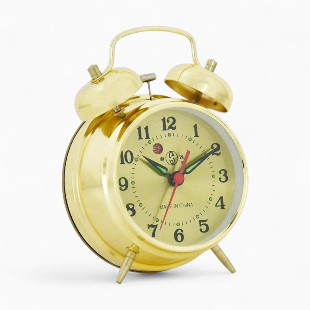 Un réveil mécanique à cloche dorée avec design classique et cadran bien lisible. Parfait pour ajouter du charme à votre espace tout en restant pratique et fonctionnel.