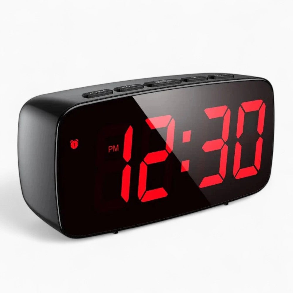 Ce réveil numérique à affichage rouge offre une visibilité claire, même la nuit, pour un réveil en douceur sans perturber votre sommeil.