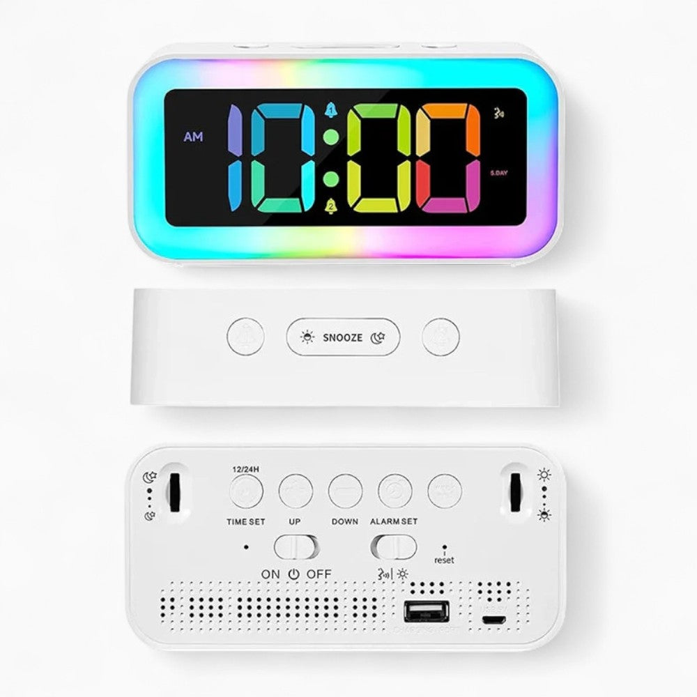Ce réveil à affichage dynamique RGB offre un réveil en douceur et une ambiance lumineuse personnalisable. Idéal pour des matins paisibles.